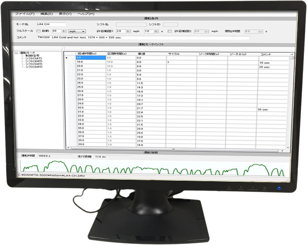 ドライバーズエイドのコントローラです。走行モードを表示する表示器には市販の液晶モニタが使用出来ます。排ガス試験等に使用する標準的なモードは内蔵メモリに搭載されていますので、メニューから選択するだけで使用することができます。